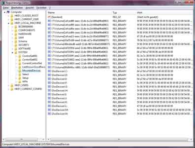 HKEY_LOCAL_MACHINE\SYSTEM\MountedDevices Ich rate aber davon ab das so zu machen. TW funktioniert danach zwar einwandfrei, ich hatte dann aber überraschend Probleme mit meinem DVD-Laufwerk. Es las dann keine CD`s/DVD`s mehr (Daten-CD). Wenn du es versuchen willst unbedingt wie beschrieben die Registriy sichern damit du es rückgängig machen kannst. Habe ich gemacht. Ist leider keine Problemlösung |