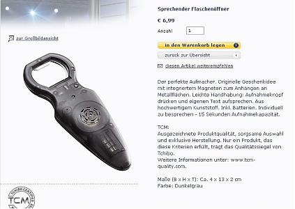 ein sprechender Flaschenöffner für EUR 6,99