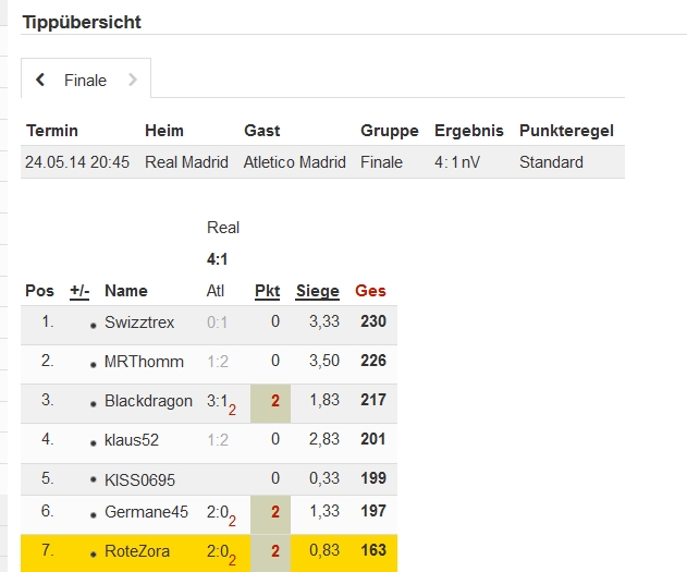 Danke ^^ Allerdings könnte MrThomm noch aufholen wenn ich auf Atletico setze und er Real richtig tippt